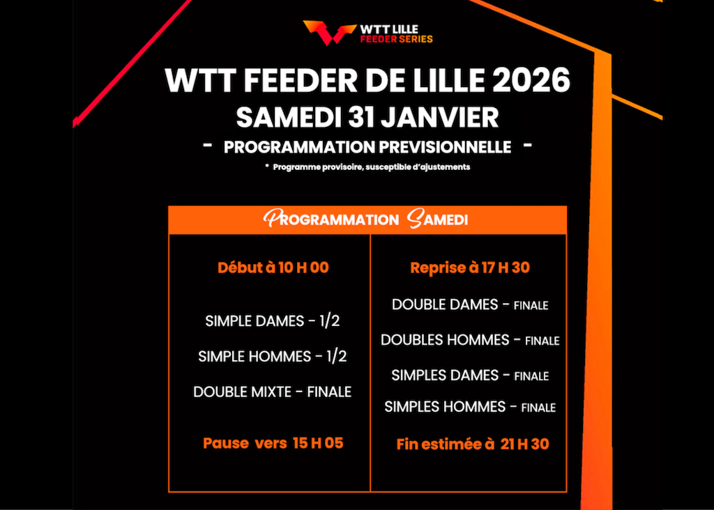 Le WTT Feeder représente une étape important du circuit mondial, avec 30 000 dollars de prize money et des points décisifs pour le classement international. Les vainqueurs en simple empocheront 125 points, tandis que les finalistes en obtiendront 100, des enjeux qui garantissent un spectacle de haut niveau. Cette première édition lilloise s’inscrit dans l’ambition de faire rayonner le tennis de table dans la métropole et d’offrir au public l’opportunité de découvrir les champions d’aujourd’hui et les futures stars de demain.