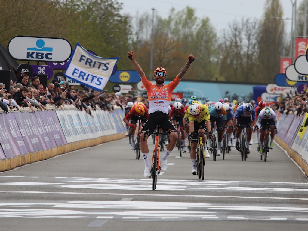 La Flandre a offert une nouvelle fois une course complètement dingue ! Ce mercredi à Waregem, Filippo Ganna s’impose sur la 80e édition d’À travers la Flandre. L’Italien d’INEOS Grenadiers coiffe Wout Van Aert dans les derniers mètres. Une histoire cruelle et implacable pour le champion belge, mais, il a démontré qu’il est en forme pour le Tour des Flandres.
