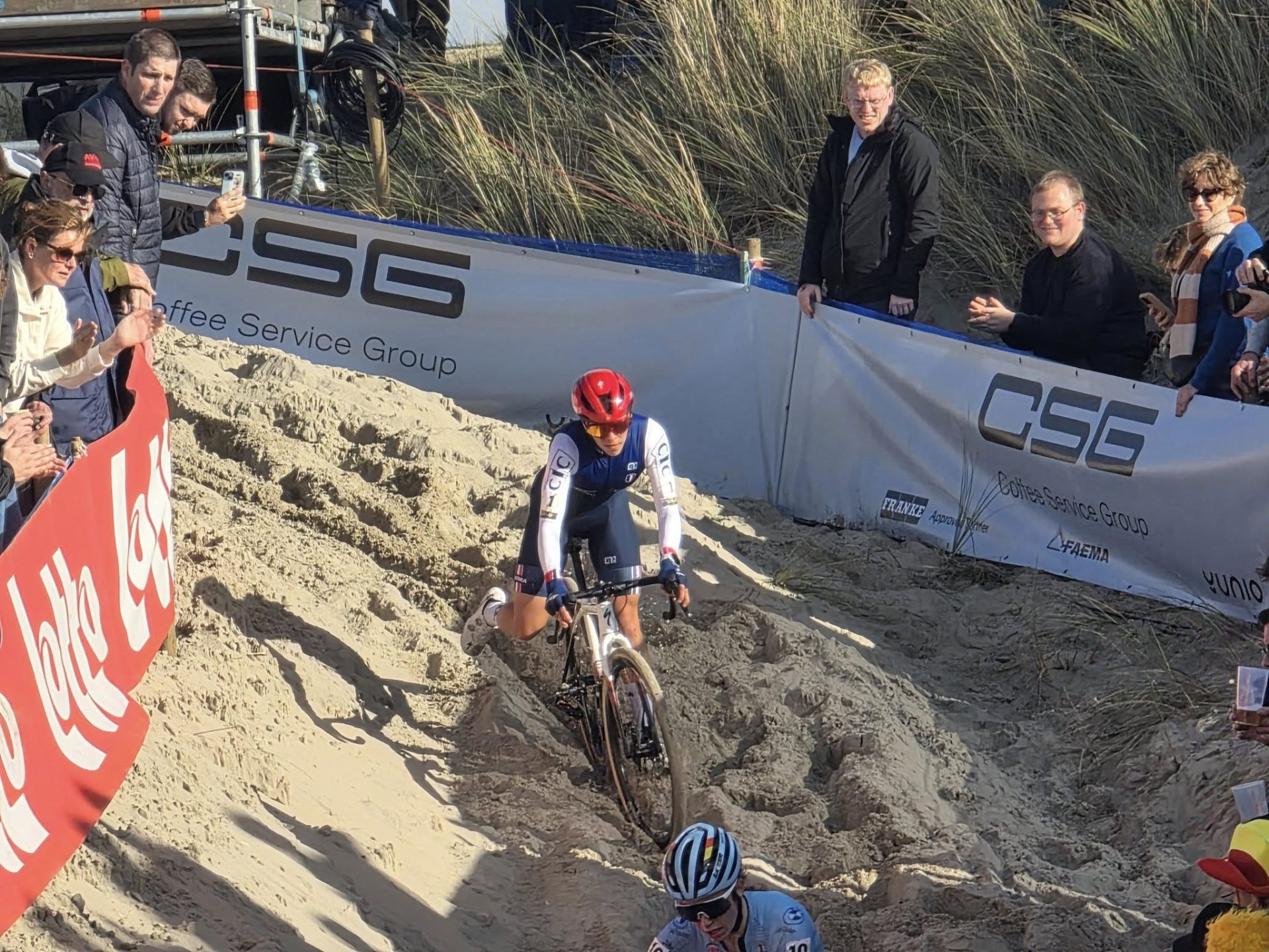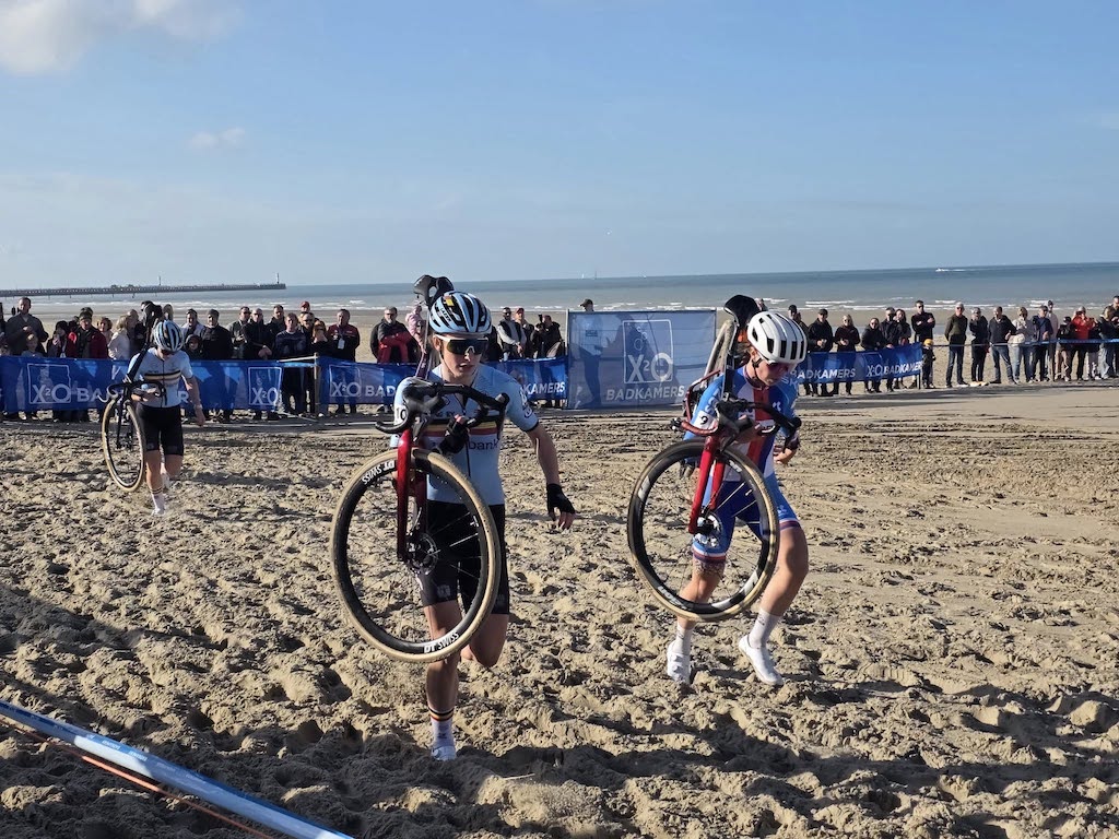 Dès le départ, Gery s’est retrouvée dans le groupe de tête avant de chuter dans le premier tour alors qu’elle revenait sur la Néerlandaise. Sans se désunir, elle a relancé, maintenant un rythme soutenu jusqu’à l’arrivée pour aller chercher une médaille d’argent aussi inattendue que méritée : « Oui, je suis deuxième. Je n’étais pas trop venue pour ça, mais c’est comme ça. C’était une course assez spéciale dans le sable, il fallait rester bien concentrée. Je suis contente, et aussi contente pour Amandine (Muller), elle a fait une belle course. Prudente, non. J’ai fait de mon mieux. Si j’avais pu partir première, je serais partie première, mais je n’ai pas réussi. J’ai essayé de me mettre dans la course, mais Léonie (Molengraaf) était plus forte aujourd’hui. Je vais couper un peu pour me reposer avant de reprendre pour la deuxième partie de saison. Les Mondiaux, fin janvier, début février, c’est l’objectif principal. Le stage sur sable qu’on a fait ici m’a beaucoup aidée. On n’a pas toujours la chance de s’entraîner dans ces conditions, donc c’était une belle préparation. »