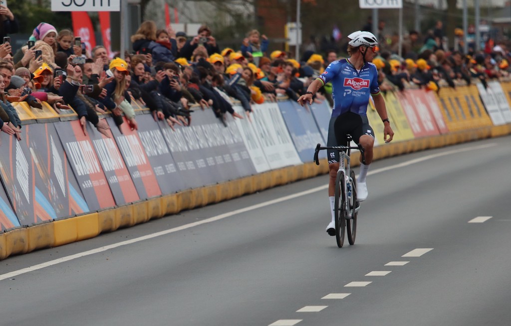 Il a attaqué sur le Paterberg, personne ne peut suivre sa roue. Van der Poel passe plus de 40 kilomètres en solitaire en tête. Classique. Mais dans le dernier kilomètre, le groupe de poursuivants revient. La victoire leur tend les bras.