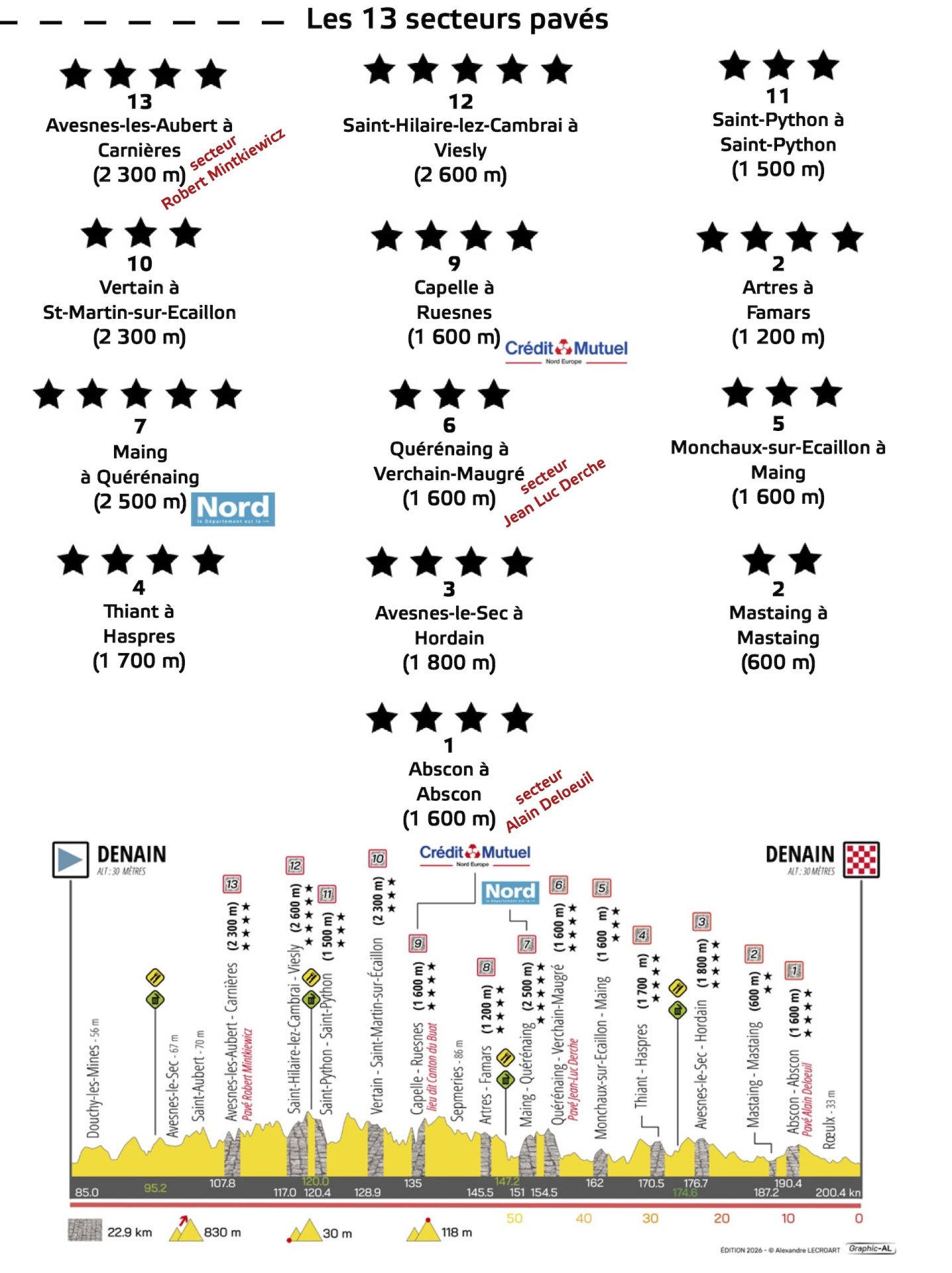 L’édition 2026 proposera un tracé de plus de 200 kilomètres, ponctué de treize secteurs pavés, faisant du Grand Prix de Denain la seule course française, avec Paris-Roubaix, à exploiter ces portions mythiques du territoire nordiste. Introduits en 2018, les pavés ont profondément modifié la physionomie de l’épreuve, la rendant plus sélective et imprévisible. Entre routes exposées, enchaînements de secteurs classés en seconde partie de course et final nerveux, la course promet vraiment un scénario ouvert. Autant d’éléments qui séduisent chaque année les spécialistes des classiques, sous les yeux d’un public fidèle et nombreux.