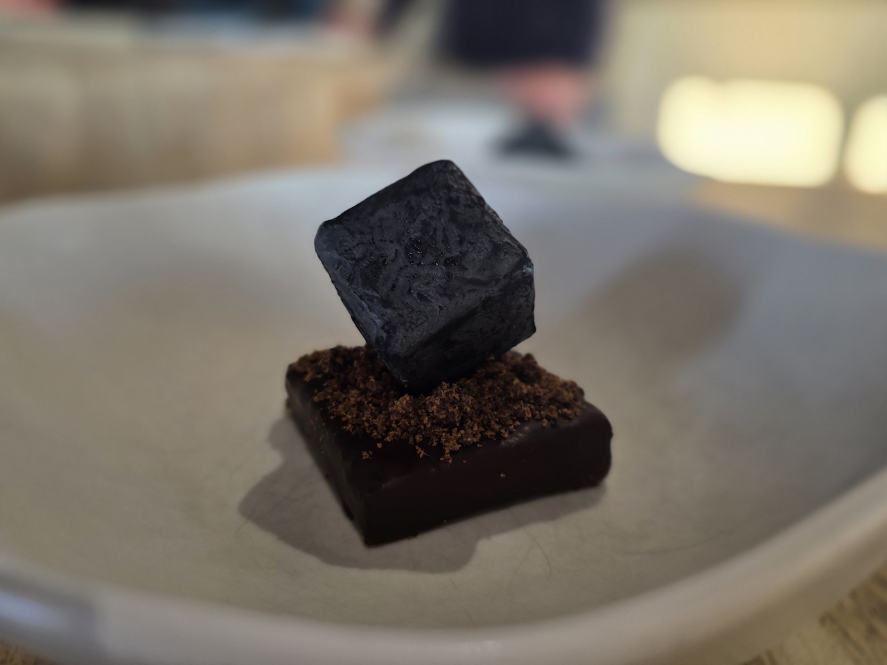 Héléna Haulbert : Avec mes doigts ! La structure de base, la coque en chocolat, c’est du travail classique. Mais pour les finitions — les aspérités, le relief, la texture rugueuse du pavé — je travaille directement avec le doigt sur chaque face. C’est artisanal, minutieux, et c’est ce qui donne tout le caractère du dessert.