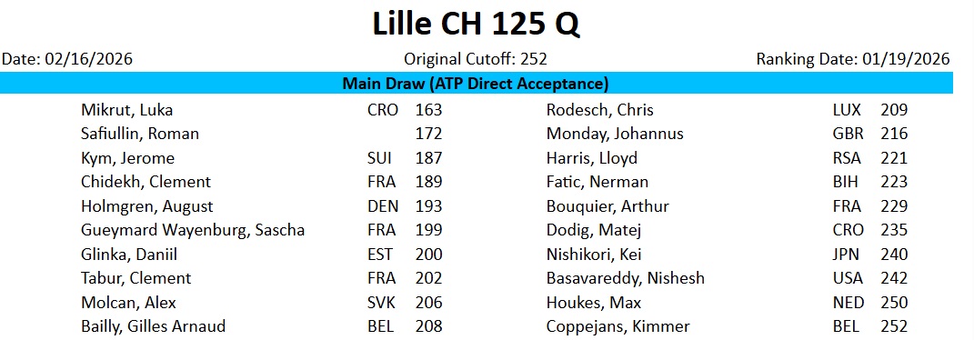 Les qualifications feront également la part belle aux joueurs tricolores. Parmi eux : Clément Chidekh, double vainqueur en Challenger cette saison, en pleine progression. Sascha Gueymard Wayenburg et Clément Tabur. Les voisins belges seront eux aussi bien représentés avec Kimmer Coppejans et Gilles Arnaud Bailly, deux joueurs capables de bousculer la hiérarchie.