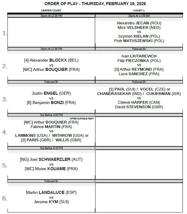 En guise d’apéritif, place au choc des générations : le tenant du titre Arthur Bouquier affronte Alexander Blockx. Bouquier sait ce que défendre un titre représente comme pression supplémentaire. Face à lui, Blockx incarne cette nouvelle vague belge qui n’a pas froid aux yeux.