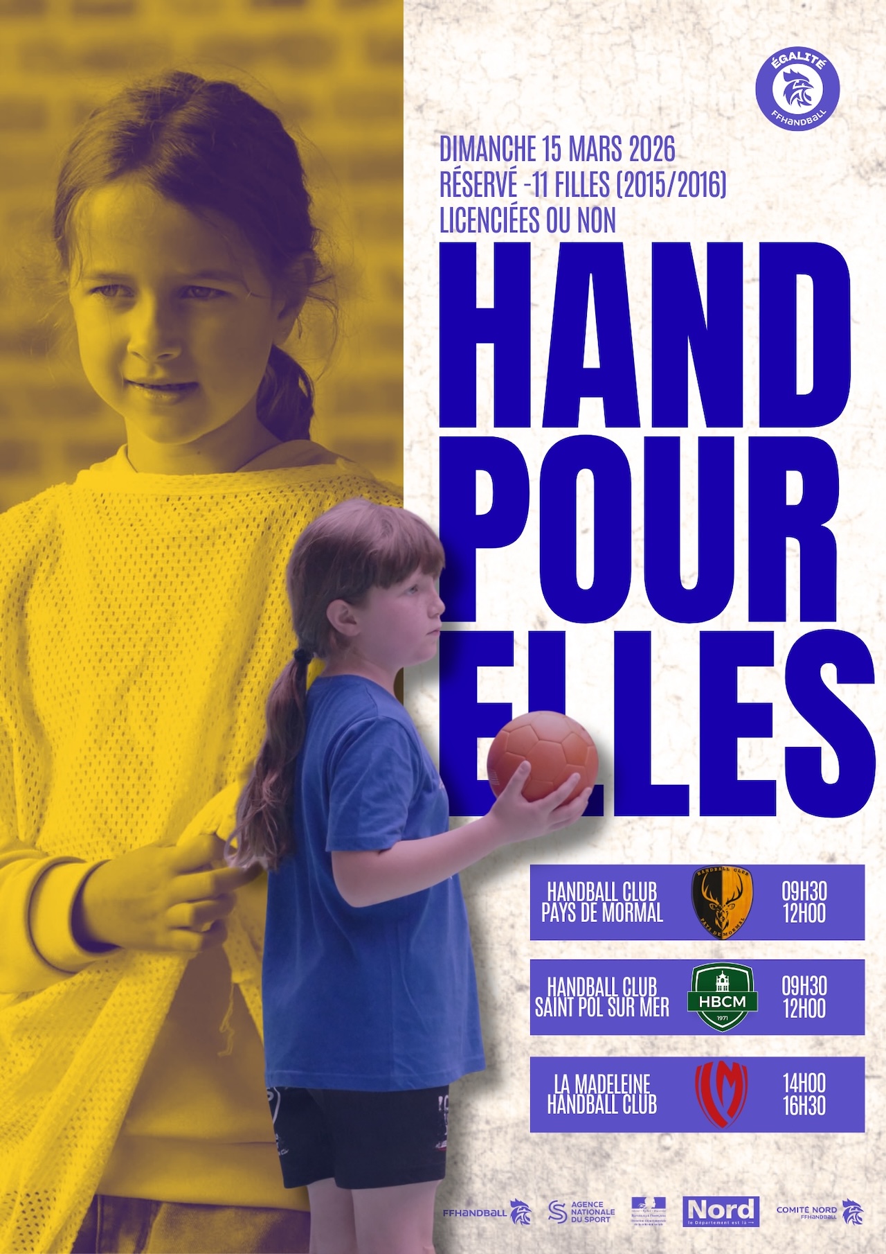 Cette action s’adresse aux jeunes filles de la catégorie –11 ans, nées en 2015 et 2016, qu’elles soient licenciées ou non. L’objectif est clair : permettre à celles qui évoluent habituellement en équipes mixtes de se retrouver entre filles, de partager un moment convivial et de se mesurer à d’autres jeunes joueuses dans un cadre bienveillant et stimulant. Au-delà de l’aspect sportif, “Hand pour Elles” se veut un véritable levier de développement de la pratique féminine sur le territoire nordiste.