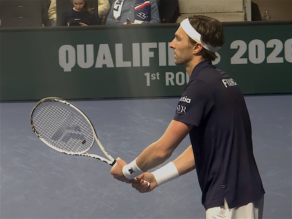 Arthur Rinderknech : Le premier set a été un peu décousu. Normalement, dans le match, je fais un jeu un peu moyen. Je suis un peu surpris par les conditions de match. Et puis lui, il frappe, il y va. Il n’a pas trop le temps de tergiverser. Je suis mis dans le dur. J’arrive à vite retourner les choses et à avoir le break. Ça revient à 5-2. J’étais plutôt en contrôle. Et puis non, un peu décousu, il reprend le dessus. Je suis finalement en tie-break. Le premier tie-break était un peu décousu. Le deuxième set était, je pense, de meilleure qualité. On a tous les deux fait de bons jeux de service. Il y a énormément de choses que j’ai pu réaliser sur les jeux de retour. Les derniers points avec lui qui s’énerve un peu, c’était cool de finir en deux sets. Surtout pour mettre la France à 1-1, parce que c’était le plus important.